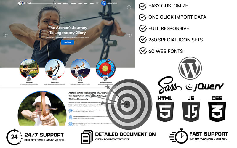 Discover theArcheri WordPress Theme, a modern and specialized solution tailored for archery enthusiasts, archery schools, and those offering archery training. With the Archeri theme, you can unlock the legendary history and passionate spirit of archery, showcasing your passion in a professional and modern way.Explore the Outstanding Features of the Archeri WordPress Theme: