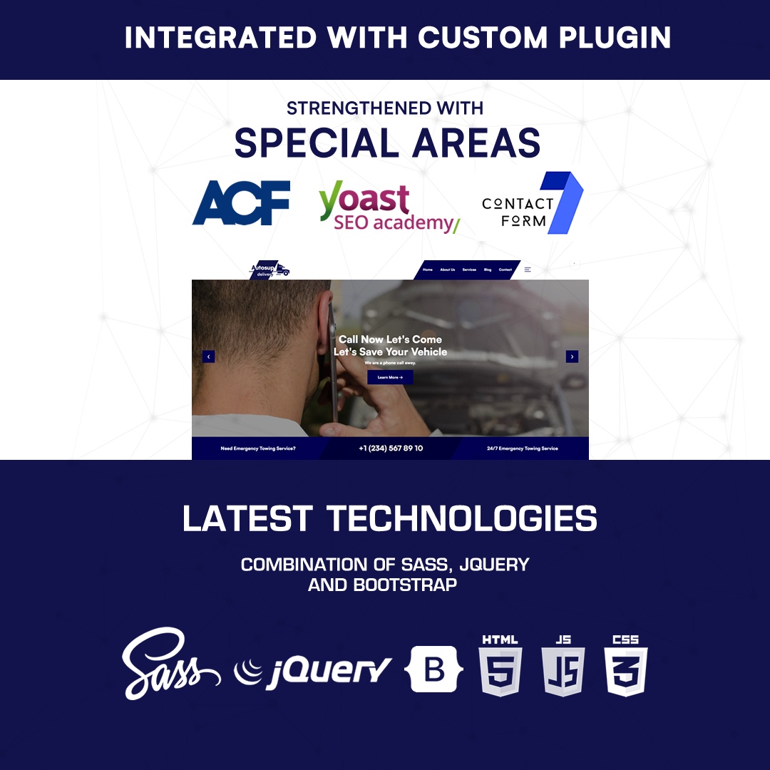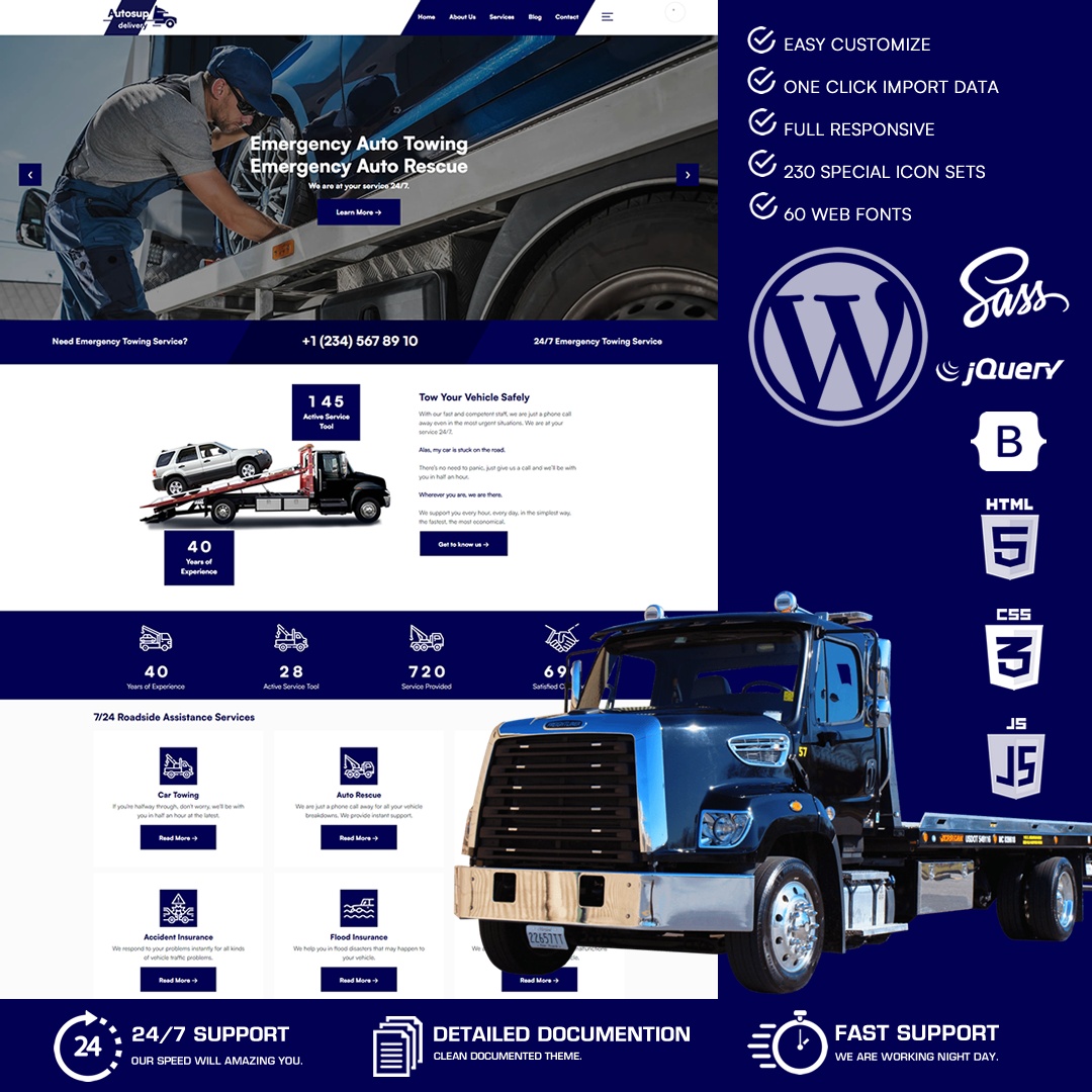 Autosup WordPres Theme is a professional wordpress theme with superior performance prepared for those who provide Vehicle Towing Service, Auto Towing, Auto Rescue, Roadside Assistance, Vehicle Insurance and All Vehicle and Road Maintenance support.