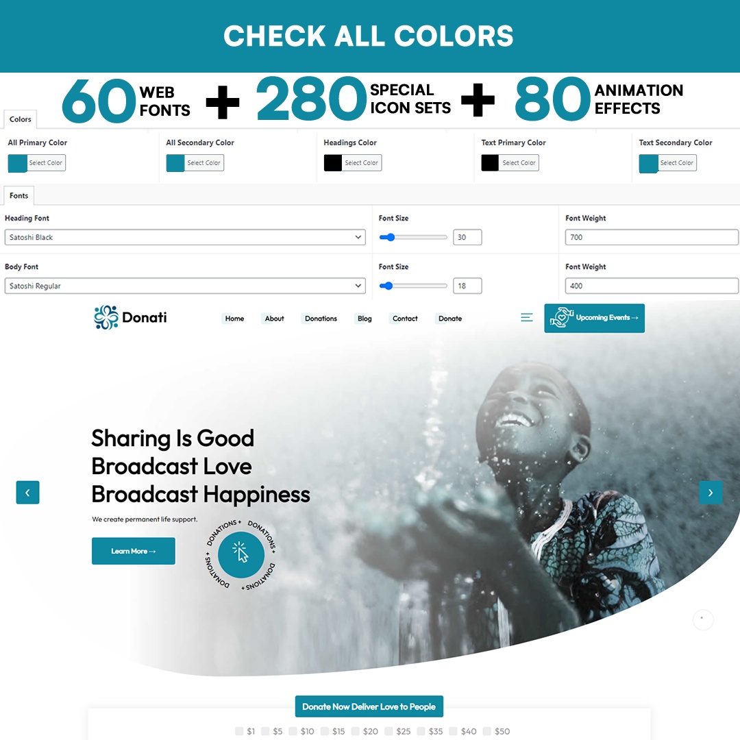 Donati Worpress Themeis professional theme forCharities, Charity, Aged Care, Charitable Organizations, Non Profit Organizations, Government, Non Governmental OrganizationandAll Charities.With Donati wordpress theme, you have an aesthetic wordpress theme with next generation advanced features that will strengthen your charity.