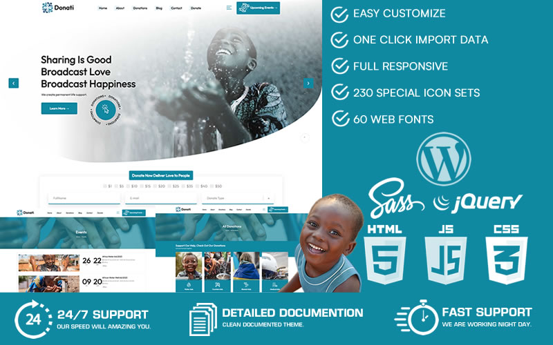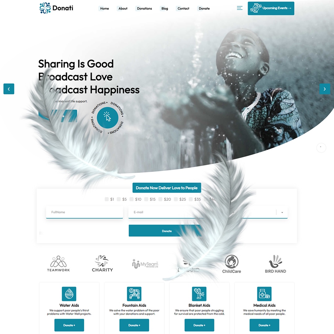 You will display a strong structure with quick forms, events, team page, donations page, donation detail pages, blog page and modern benefits page.