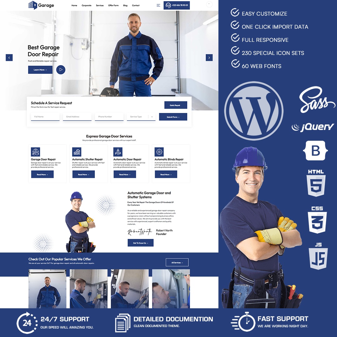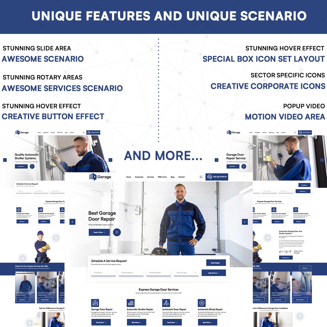 You will be able to get fast customers with this new generation creative wordpress theme we developed for Garage Door Repair and Shutter Repair Services.Garage WordPress Theme is a unique wordpress theme designed for Garage Door Repair, Shutter Repair, Automatic Shutter Repair, Door Repairs and All Repair Services.